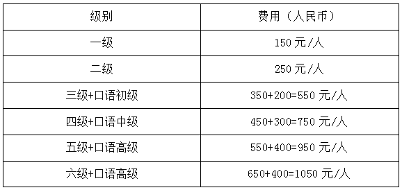 (以上費用僅為HSK和HSKK考試的報名費,不包含成績單郵寄等其他費用)